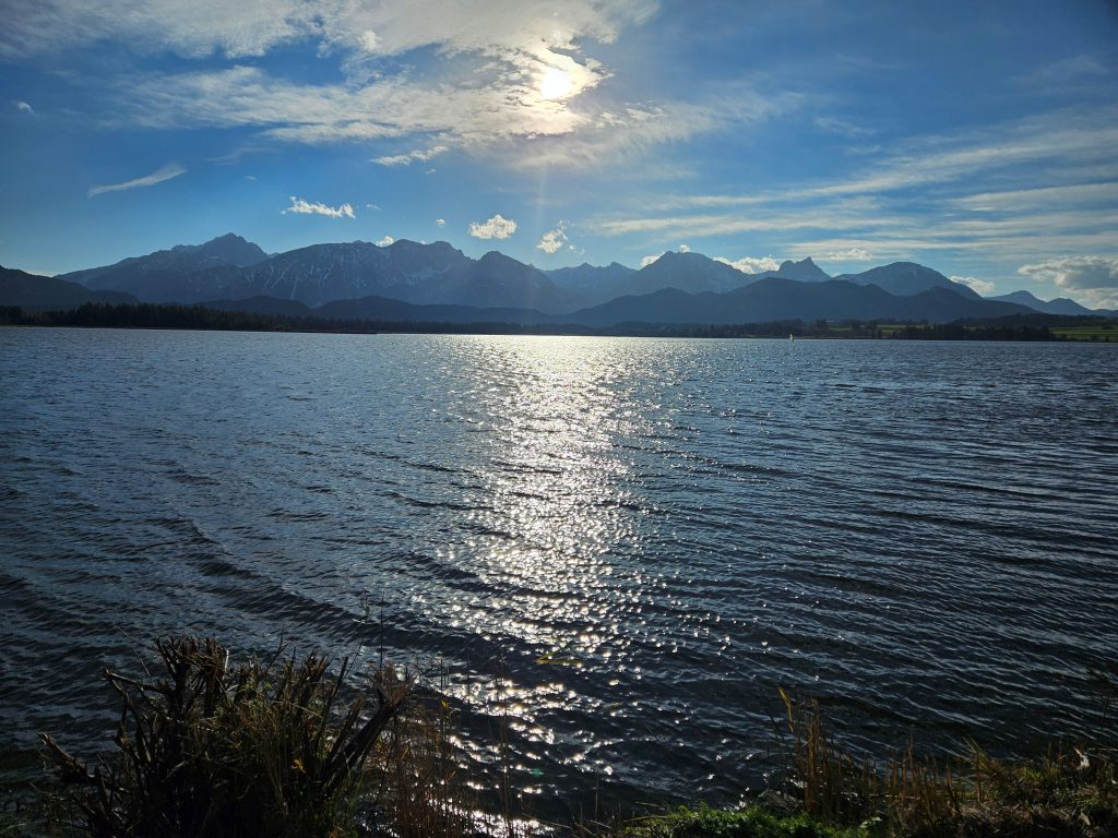 Gerne begleite ich dich auf der Suche nach deinen wahren Träumen. Denn oft streben wir nach den Träumen Anderer. Mach dich zusammen mit mir auf den Weg zu deiner Klarheit. Klar wie der See mit den Bergen im Hintergrund. Das Foto zeigt den Hopfensee in meiner Heimat, dem Allgäu.